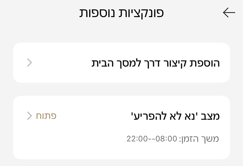 (ניתן להגדרה דרך: “מנהג” -> “התאמה אישית של ניקוי החדרים”)