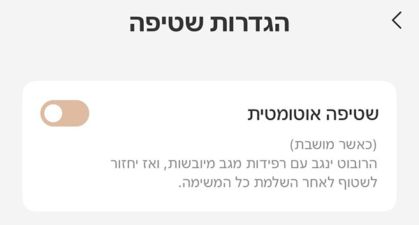 ⚙️ הגדרות -> הגדרות תחנת עגינה -> הגדרות שטיפה -> שטיפה אוטומטית: הפעל