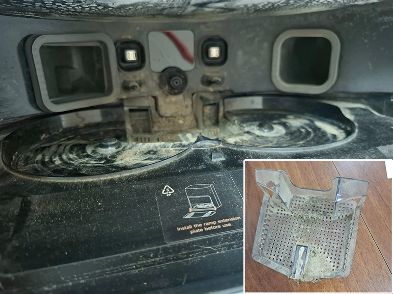 בתמונה אפשר לראות שואב רובוטי V50 שבועות בודדים של עבודה עם הזנחה קשה שעלולה למנוע מכם לקבל שירות ולהרוס את המכשיר.