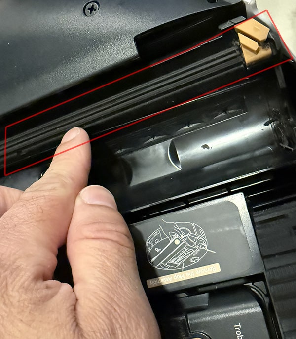 - הפכו את השואב בעדינות (רצוי על מיטה או על משטח רך כלשהו). לאחר הפעלת השואב המגנטים יבלטו למעלה כמו בתמונה: