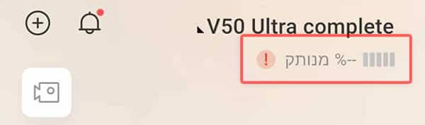 3️⃣ יש להמתין כ-10 דקות ולאחר מכן לוודא באפליקציה כי מופיע חיווי המאשר שהסוללה נטענת.