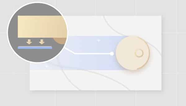 ניקוי בכיוון הרצפה הוא מצב עבודה שבו הרובוט פועל בשלבים כדי להגן על השטיח: כאשר מזוהה שטיח, הרובוט ינקה תחילה את האזור שמחוץ לשטיח במצב שטיפה. לאחר מכן, הוא יחזור לתחנת הבסיס כדי להסיר את רפידת המגב ורק אז ינקה את השטיח עצמו. במקרים שבהם נדרשים מספר ניקיונות באותו אזור, הניקוי יבוצע בתנועה של דוגמת S.
