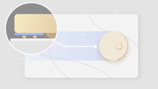 כאשר הרובוט מזהה שטיח, הוא חוזר לעמדת העגינה, משאיר שם את הרפידות הרטובות, ורק אז ניגש לשאוב את השטיח. בדרך זו, השטיח מקבל ניקוי עמוק ללא כל מגע עם מים או לחות.בדגמים עם רולר שטיפה: