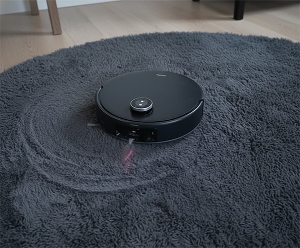 הסיבה: כשהשטיח מוגדר כשטיח עם “שיער ארוך” זה מאתגר יותר, השואב עלול להיכנס ללולאת בדיקה: הוא מנסה לעלות, מרגיש שמשהו לא תקין בחיישני הגובה או המומנט של הגלגלים, “מחשב מסלול מחדש” שוב ושוב, ובסוף מרים ידיים וחוזר לתחנת העגינה כדי לא להינזק.