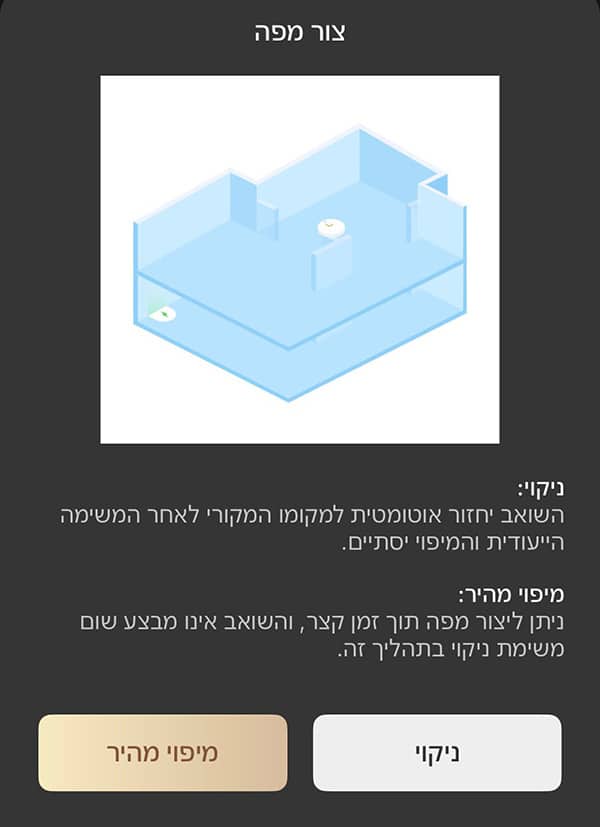 💨 כדי לבצע שאיבה בלבד, מציבים את השואב בקומה שבה רוצים לנקות, בוחרים את המפה המתאימה באפליקציה, והוא יתחיל לשואב את אותה קומה.