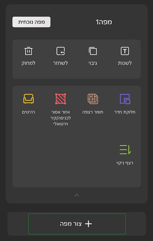 7️⃣ כדי להוסיף קומה חדשה, יש ליצור מפה נוספת על ידי לחיצה על הכפתור “צור מפה“.