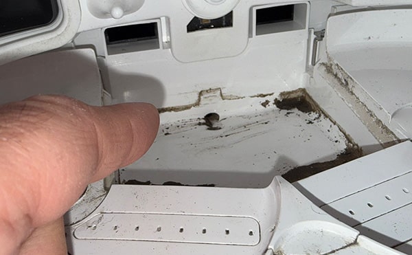 בסיום הניקיון בדרך כלל שהגיע הזמן לנקות את מגש השטיפה תקפוץ לכם הודעה באפליקציה: “אנא נקו את לוח הכביסה”. מה שאומר שזה הזמן לניקיון מגש השטיפה בתוך העמדה.