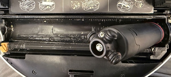 7️⃣ ואם כבר אנחנו באיזור, אז תוודאו גם שפתח ריקון מיכל האבק בצד של השואב נקי ופתוח ללא אבק, שיער או כל לכלוך אחר שנתפס שם.