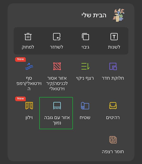 במידה ואתם מקבלים הודעה “יש לבחור חדר אחרי כדי להוסיף ולערוך אזורים עם גובה נמוך” שזה בדרך כלל בגלל שסימנתם אזור אחד על השני או כשאתם עוברים את גבולות החדר ונוגעים בחדר אחר (הצמוד).