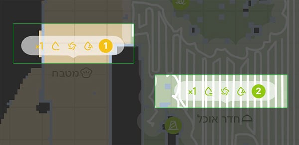 - לחצו וסמנו את החדר הרצוי במפה ואז עברו למסך הגדרות הניקיון להתאים את הניקיון לחדר הספציפי.