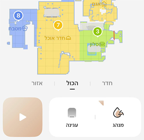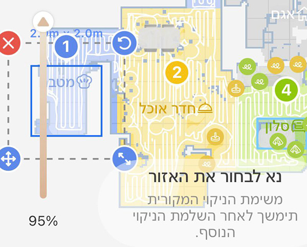 תוכלו לסמן על המפה איזור נוסף והשואב ינקה גם אותו כחלק מהניקיון של הבית.
