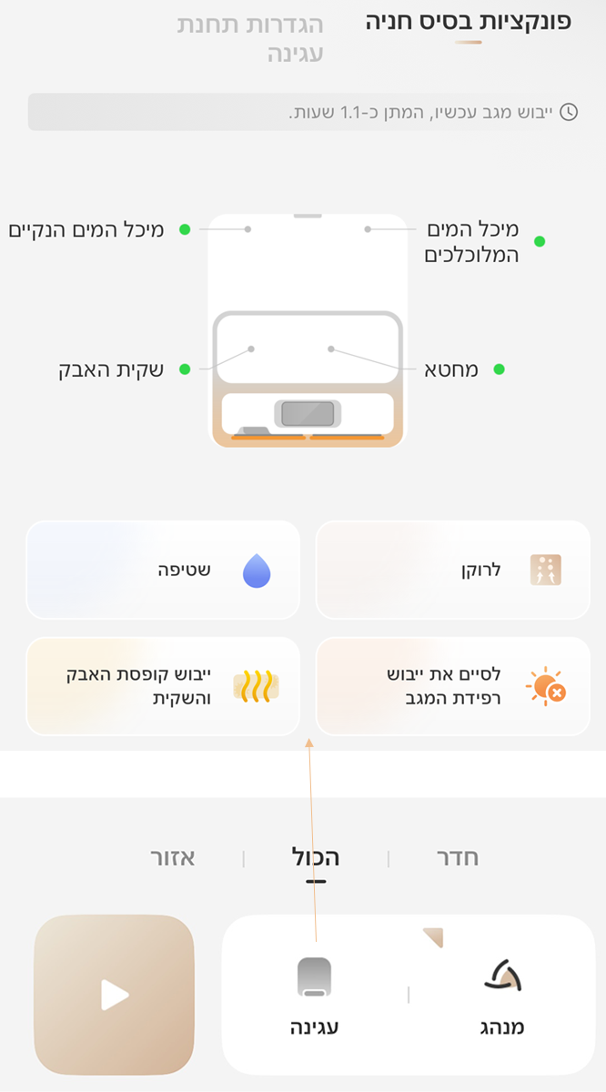 💦 שטיפה לאחר שאיבה – השואב הרובוטי קודם שואב את החדר או האיזור בעוצמה חזקה וללא הרפידות ואז יחזור לעמדה לקחת את הרפידות ויחזור לחדר או לאיזור לשטיפה.