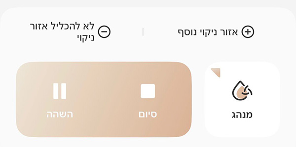 בזמן הניקיון יש לכם פאנל פעולות באפליקציה הכולל השהיה זמנית וסיום הניקיון, חזרה לעמדה, הוספת אזור לניקיון וביטול איזור קיים.