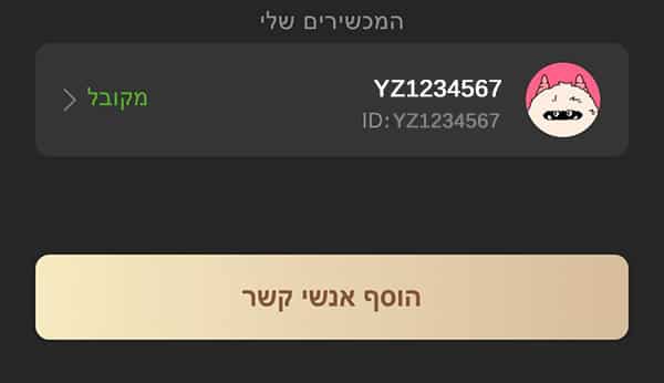 6️⃣ לאחר הכנסת איש הקשר החדש, תבקשו האיש קשר לאשר את ההזמנה באפליקציה. לאחר אישור ההזמנה תראו את הטקסט “מקובל” בירוק.