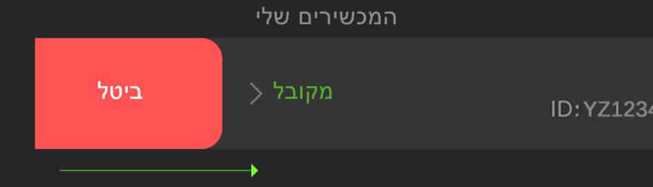 כנסו לרשימת המכשירים שלי, תזיזו את האצבע לצד כדי לחשוף את כפתור ה-“ביטול“.