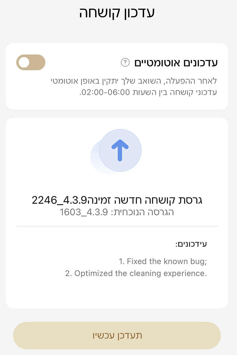 עדכון תוכנה לשואב אבק רובוטי חשוב כדי לשפר את הניווט ושיפור ביצועי הניקיון, לפתור תקלות קיימות להוסיף יכולות חדשות ולחזק את אבטחת המידע.