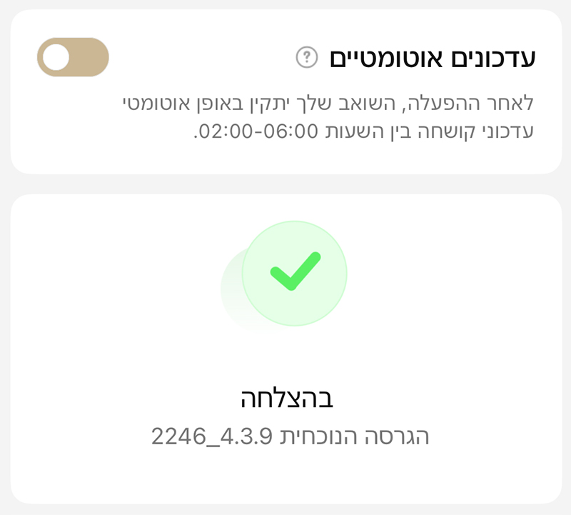 בסיום תקבלו הודעה שהעדכון הסתיים בהצלחה.