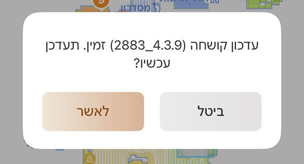 כשיש עדכון קושחה חדש לשאוב ולעמדה אתם תקבלו בעת השימוש באפליקציה את ההודעה לעדכון קושחה, יש לאשר ולהתחיל בעדכון.