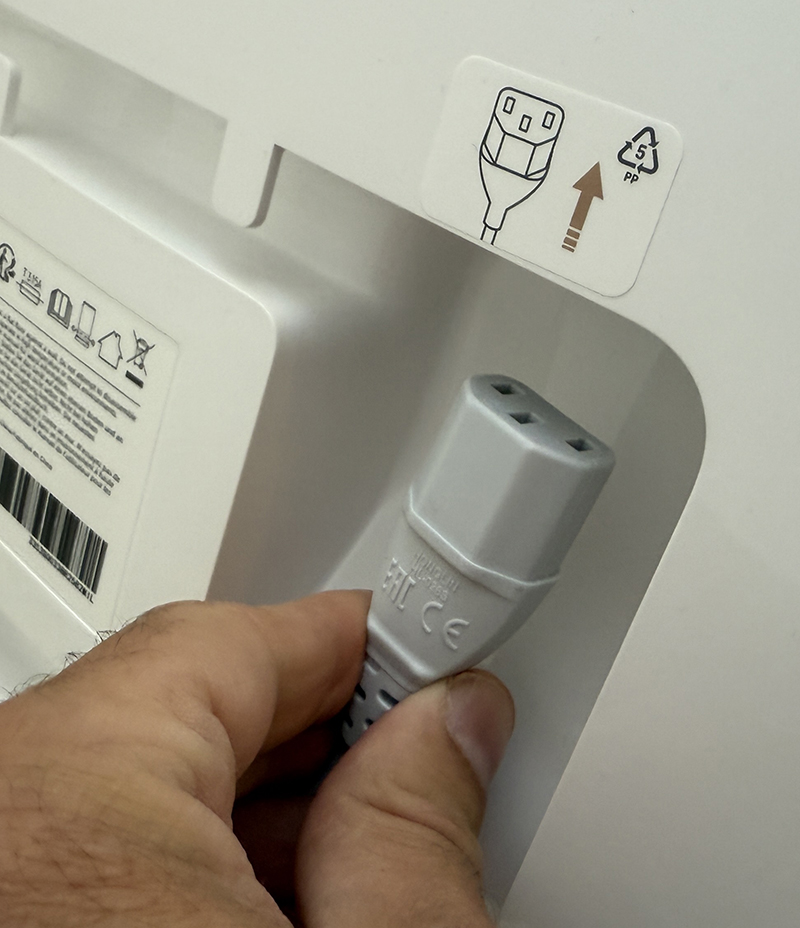יש להוציא בזהירות את המדבקות והמגנים על המכשיר ועל העמדה.