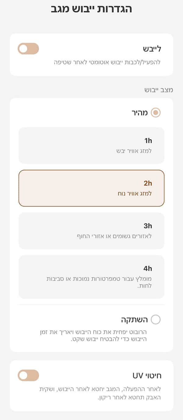 ⚙️ לשאובים עם רפידות – מצב ייבוש: 2h שעתיים